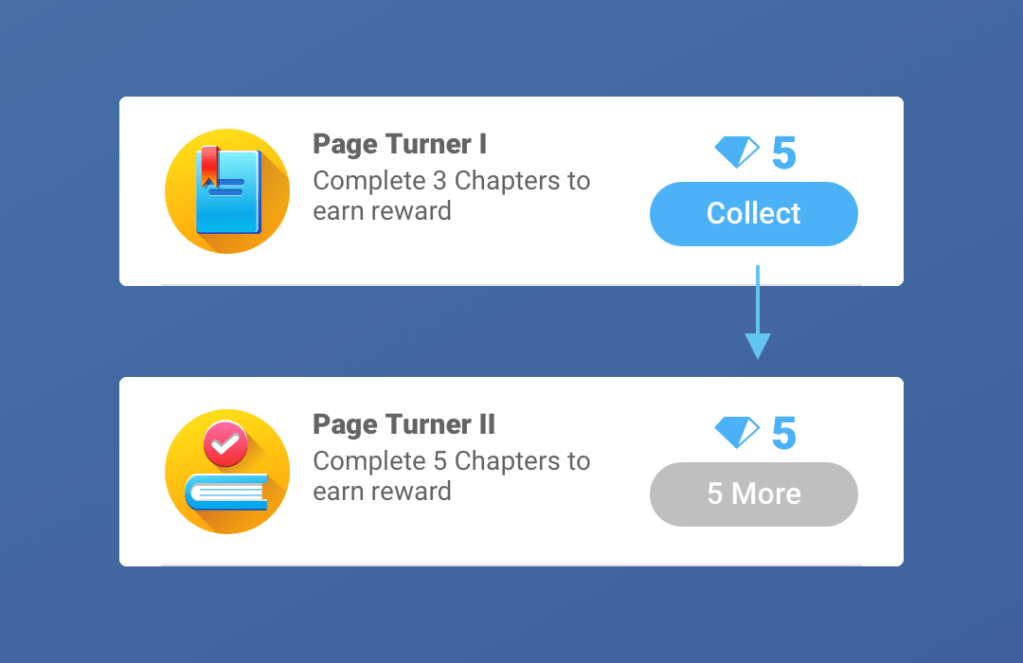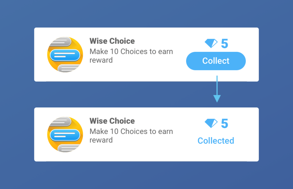 - Card content (title and description) reflects the task a player needs to complete in order to get the reward.