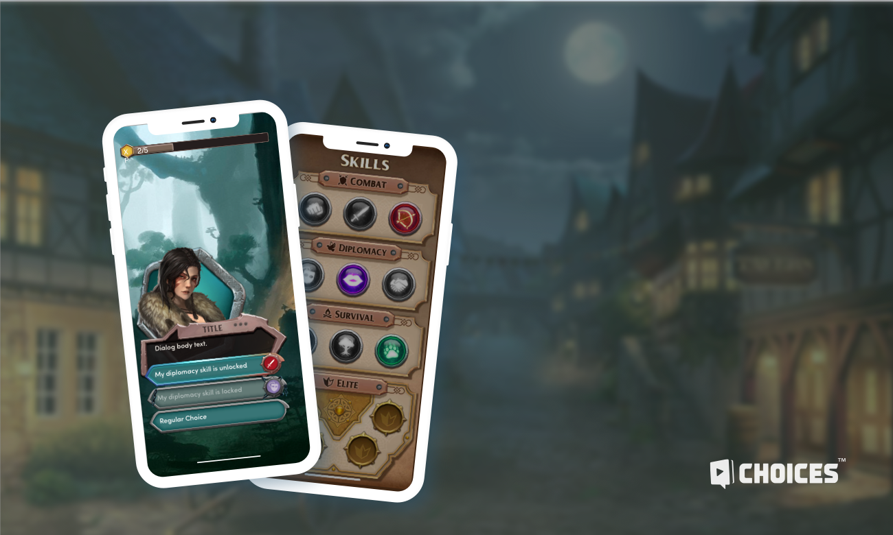 Locked Choice is a new feature that allows content creators to add locked choices options to the stories. Currently, it is implemented in Blades of Light and Shadow, fantasy style book. Players need to gain specific skills to be able to use skill choice, that is locked otherwise.